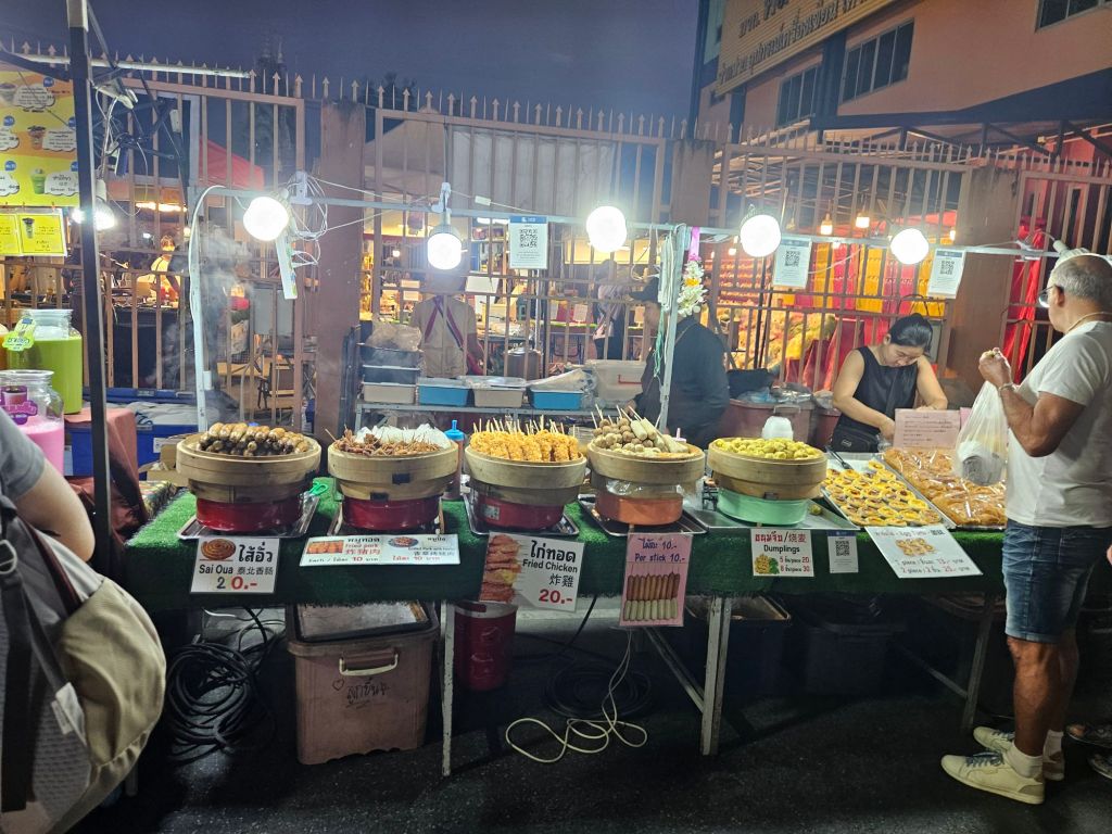 One evening I was wandering through the night markets alone, just drifting between stalls and people. The smells of street food, music playing somewhere nearby, the buzz of the crowd.