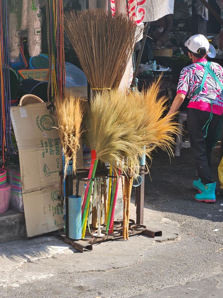 Markets seemed to appear everywhere. Small stalls selling brooms made from dried grasses, baskets, tools and everyday things locals actually use. It was simple, practical and completely fascinating to wander through.