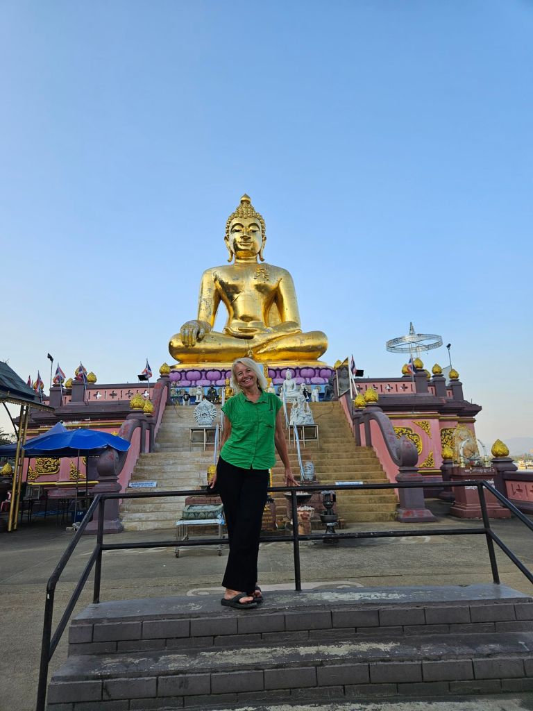 Temples were everywhere too. Some quiet and peaceful, others full of colour and intricate detail. One morning I stood beneath a huge golden Buddha statue, the kind of place that makes you feel small in the best possible way as the early morning light caught the gold.