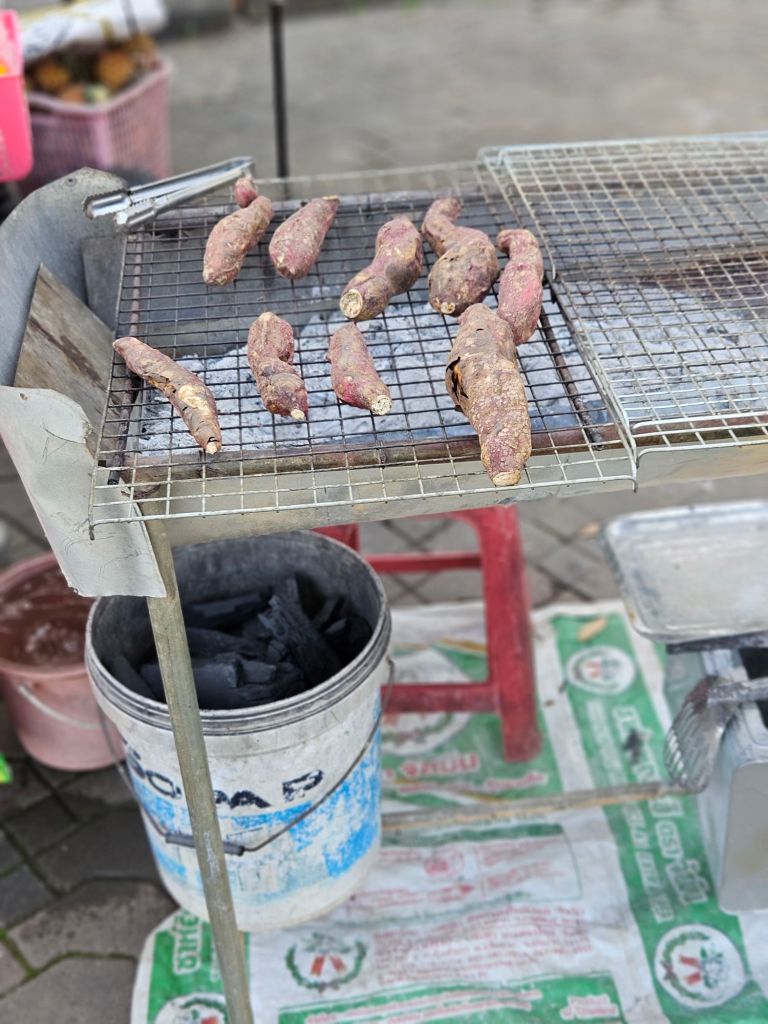 Some moments were just simple travel pleasures. Street food cooked right there on the footpath. Sweet potatoes roasting slowly over charcoal. The smell of smoke drifting through the warm evening air.