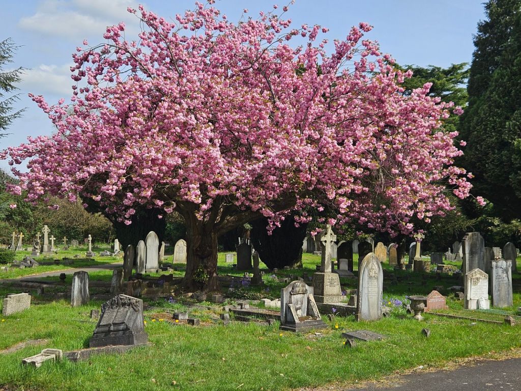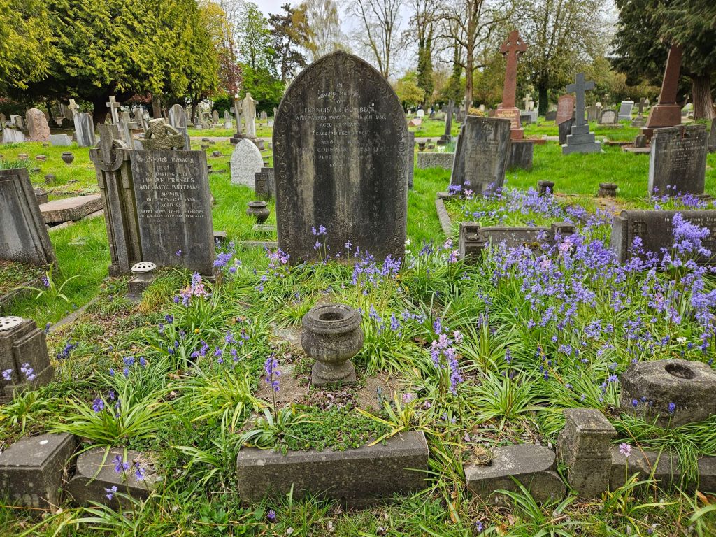 I had already wandered through this cemetery once and been struck by how beautiful it was. Bluebells everywhere, old stones, leaning crosses, huge old trees, blossom, and that quiet feeling old cemeteries sometimes have when they feel peaceful rather than sad.